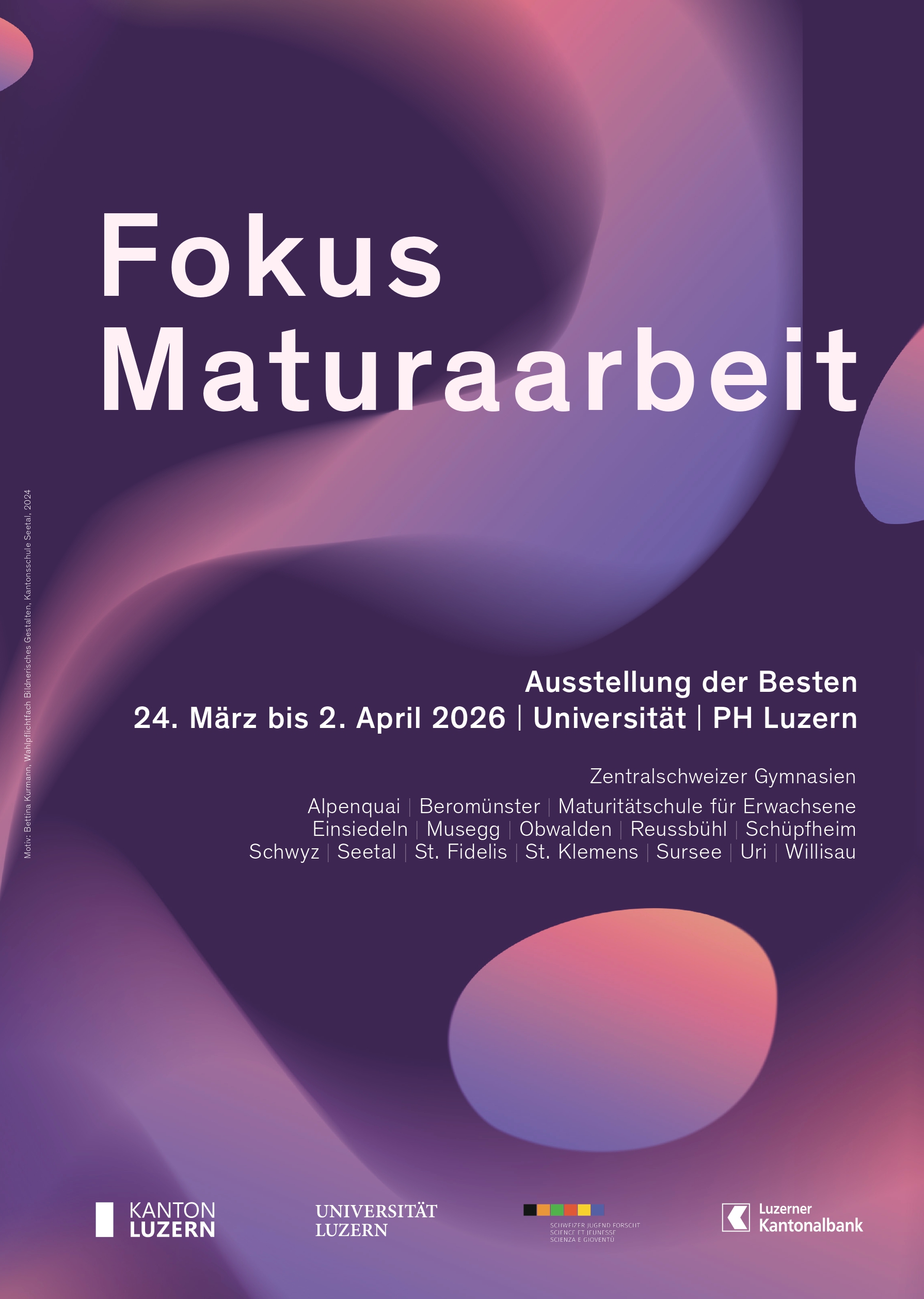 Alle 44 Maturaarbeiten sind bis am 11. April 2025 im Foyer des Uni-/PH-Gebäudes Luzern zu besichtigen. Hier finden Sie den Kurzbeschrieb über alle 44 Arbeiten.